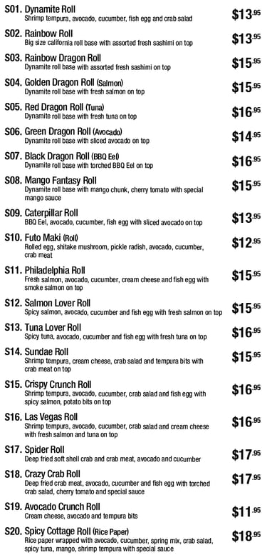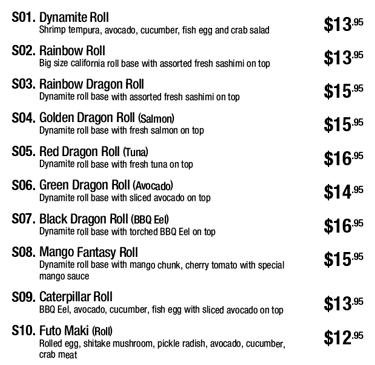 If you need to substitute any sushi, sashimi, or sushi roll. Please ask for extra charges cost from our worker.
