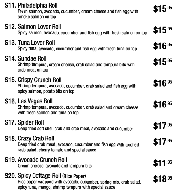 Each special roll comes in 10 pieces